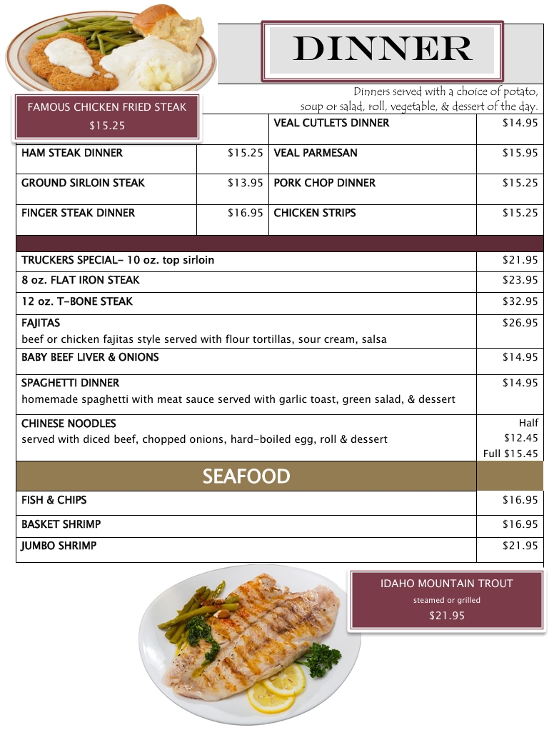 “ Travelers passing through from SLC to visit family in Twin Falls. This diner is great. Staff was friendly. Food was great. I got a club house and wife got french toast. We both left full. Price before tip was about $30. My wife also got a hot chocolate. It was big, tons of whipped cream and the sprinkles on top were a nice touch. Really happy we found this place. We will probably make this our regular stop anytime we are traveling this way! ”